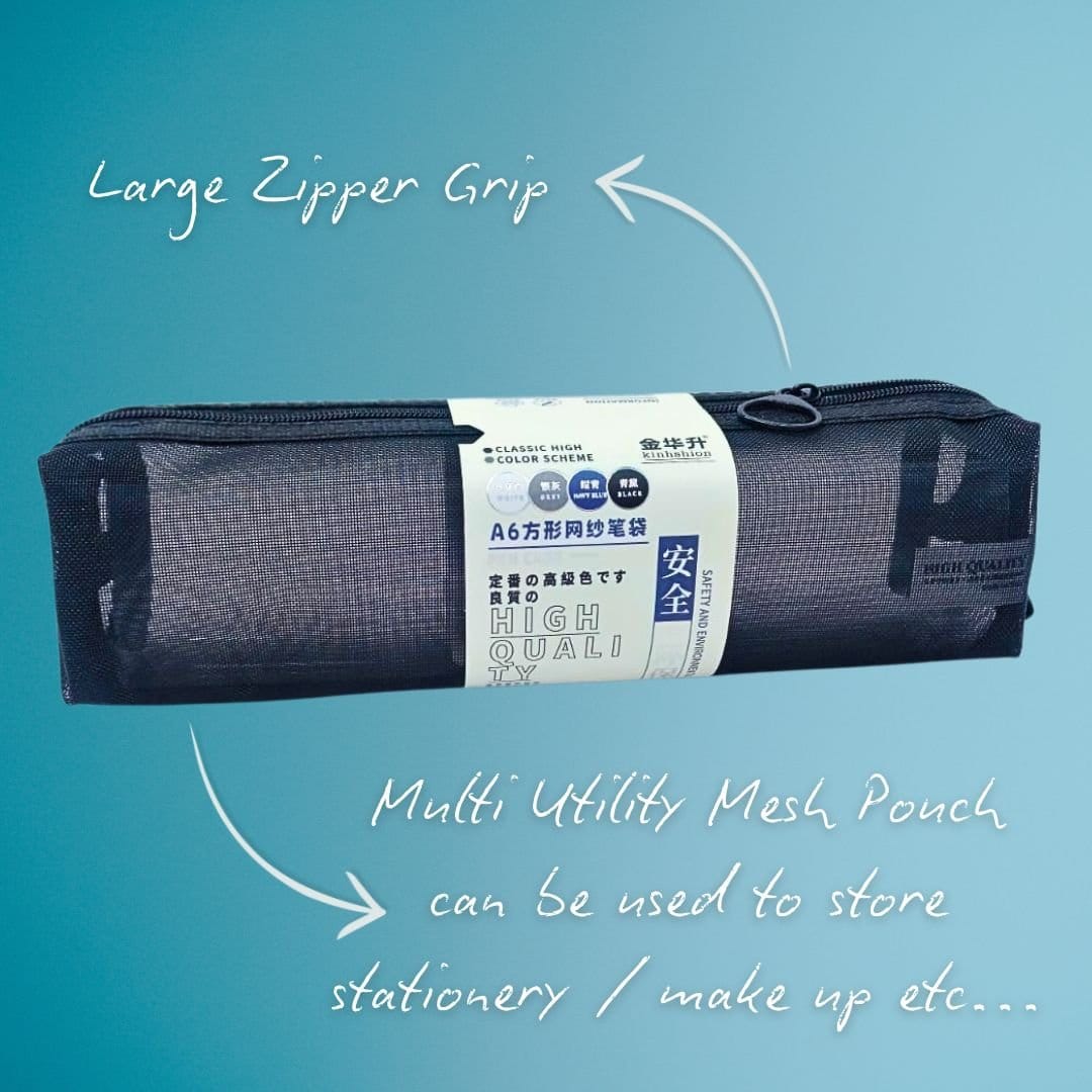 Mesh Pouch – Black | Durable Zipper Utility Case for Stationery & Travel