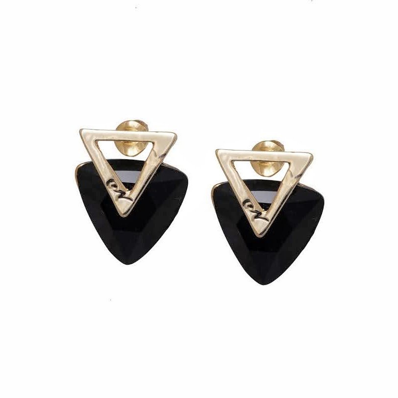 Add a modern twist to your look with TriGem Studs. Featuring a gold-toned triangle frame paired with a sparkling heart-shaped crystal, these earrings offer the perfect mix of edgy and elegant. Available in black, emerald green, and lavender, they’re lightweight, stylish, and ideal for any occasion—from casual days to special nights out. TriGem Studs are your go-to accessory for standout style with a touch of sophistication.